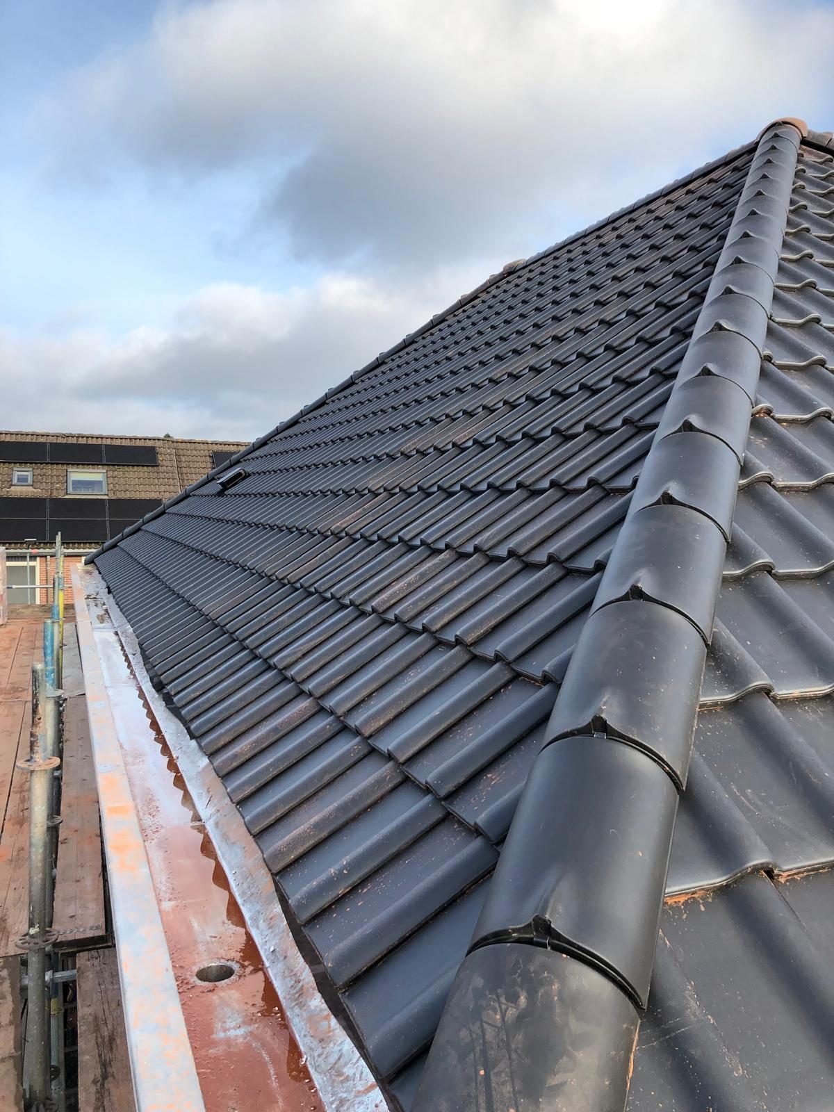 Bij nieuwbouwprojecten is een strakke en nauwkeurige uitvoering essentieel voor zowel de uitstraling als de duurzaamheid van het dak. Nadat de onderconstructie door de aannemer was voorbereid, hebben wij het hellende dak voorzien van nieuwe dakpannen.